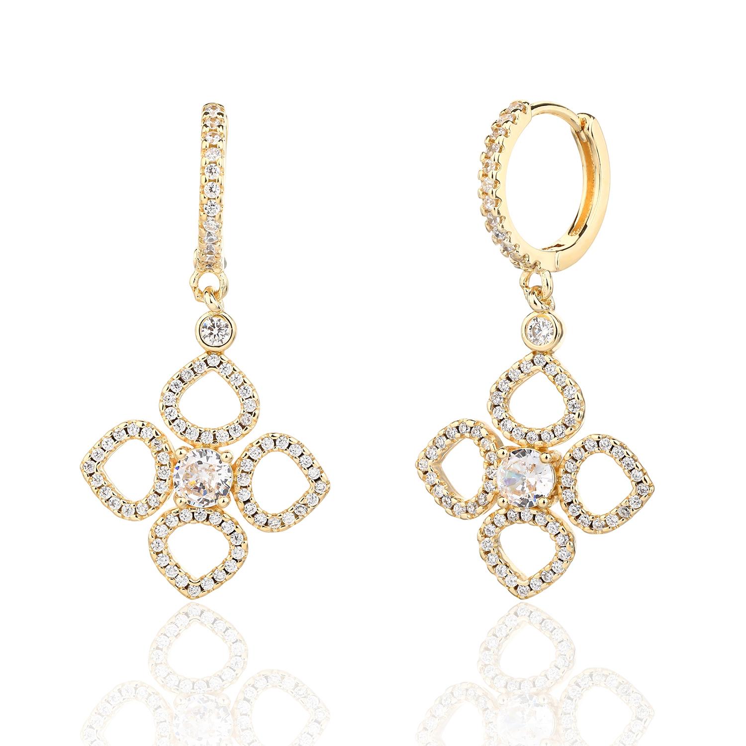 זוג עגילים מצופים זהב 14K משובצים זרקונים