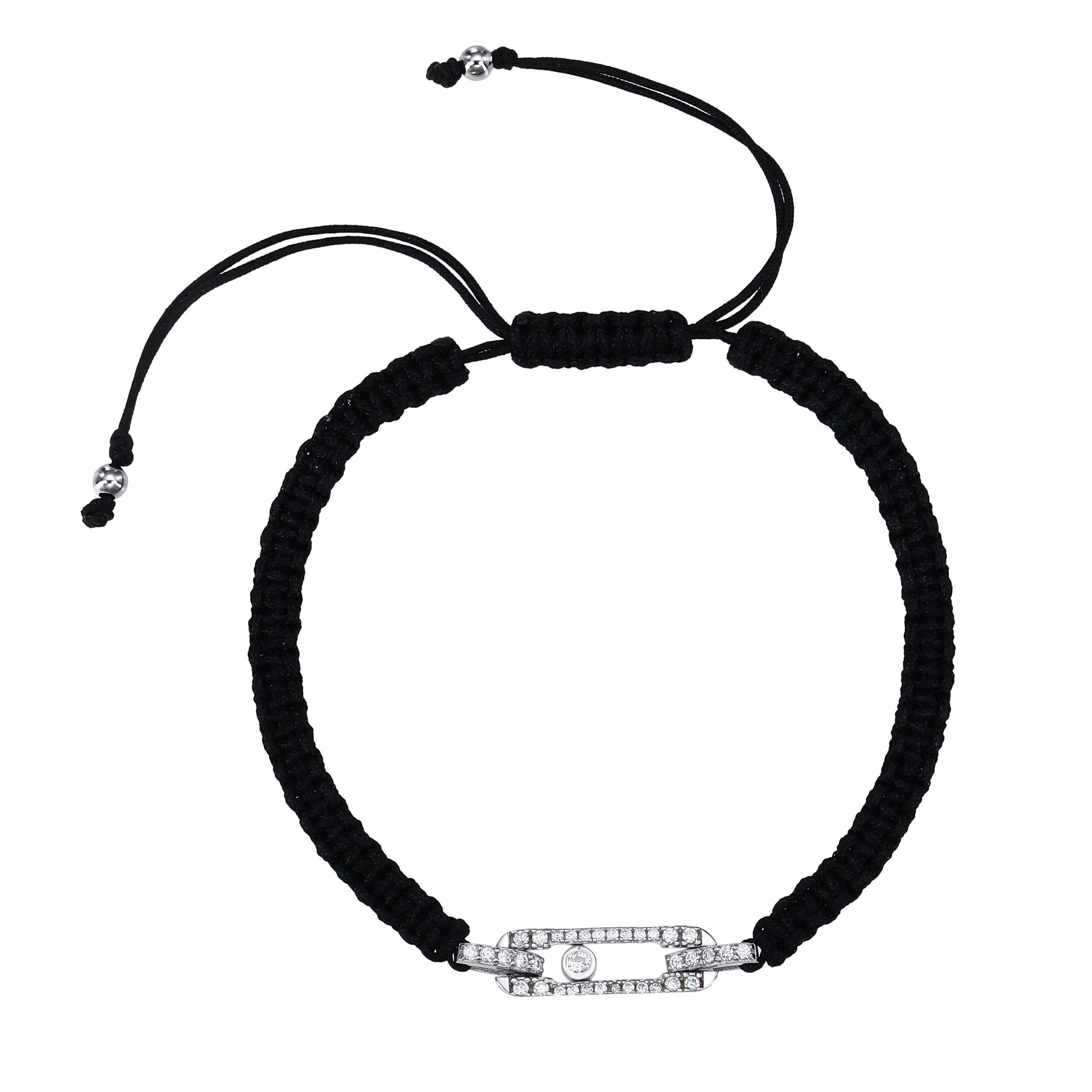 צמיד בד עם תליון כסף 925 משובץ זרקונים