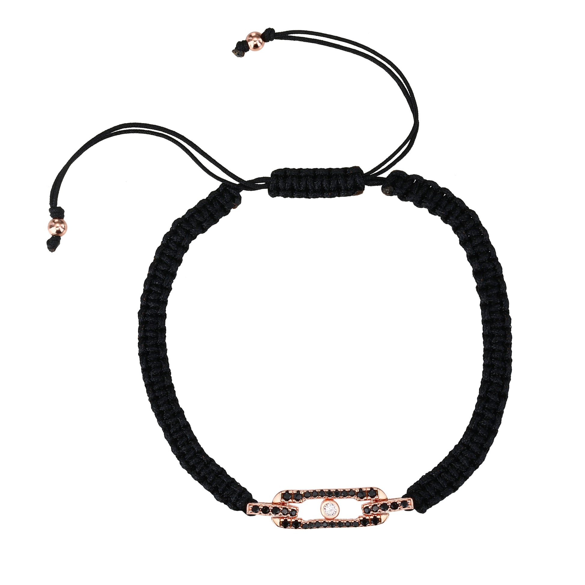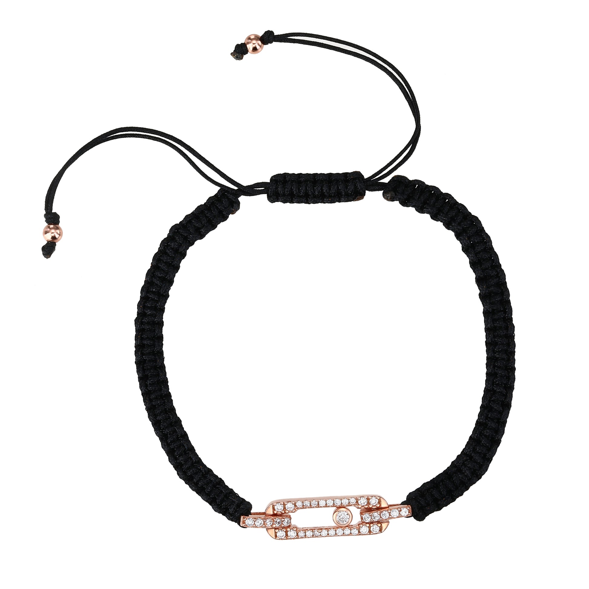 צמיד בד עם תליון רוז גולד משובץ זרקונים