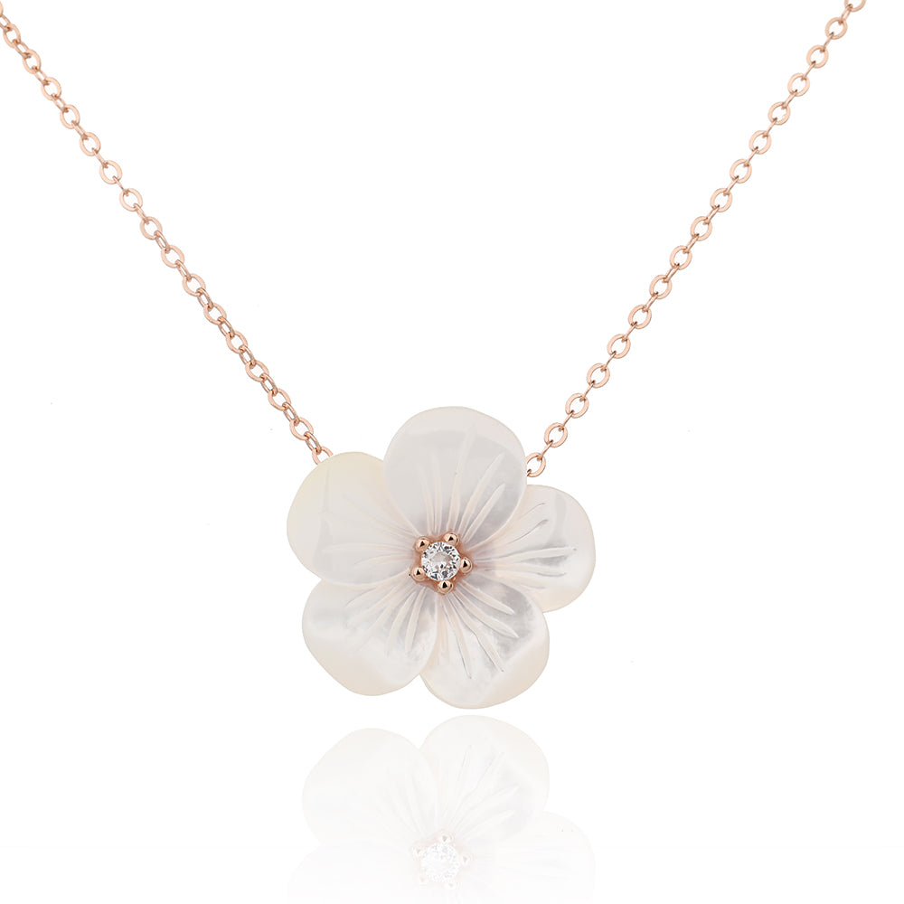 שרשרת פרח רוז גולד משובצת זרקונים