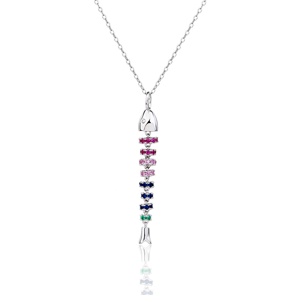 שרשרת צ׳וקר דג כסף 925 משובצת אבני זרקון צבעוניות