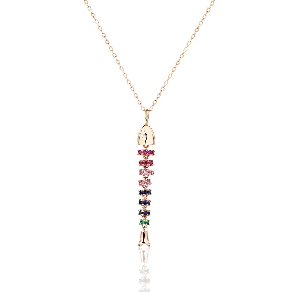 שרשרת צ׳וקר דג רוז גולד משובצת אבני זרקון צבעוניות
