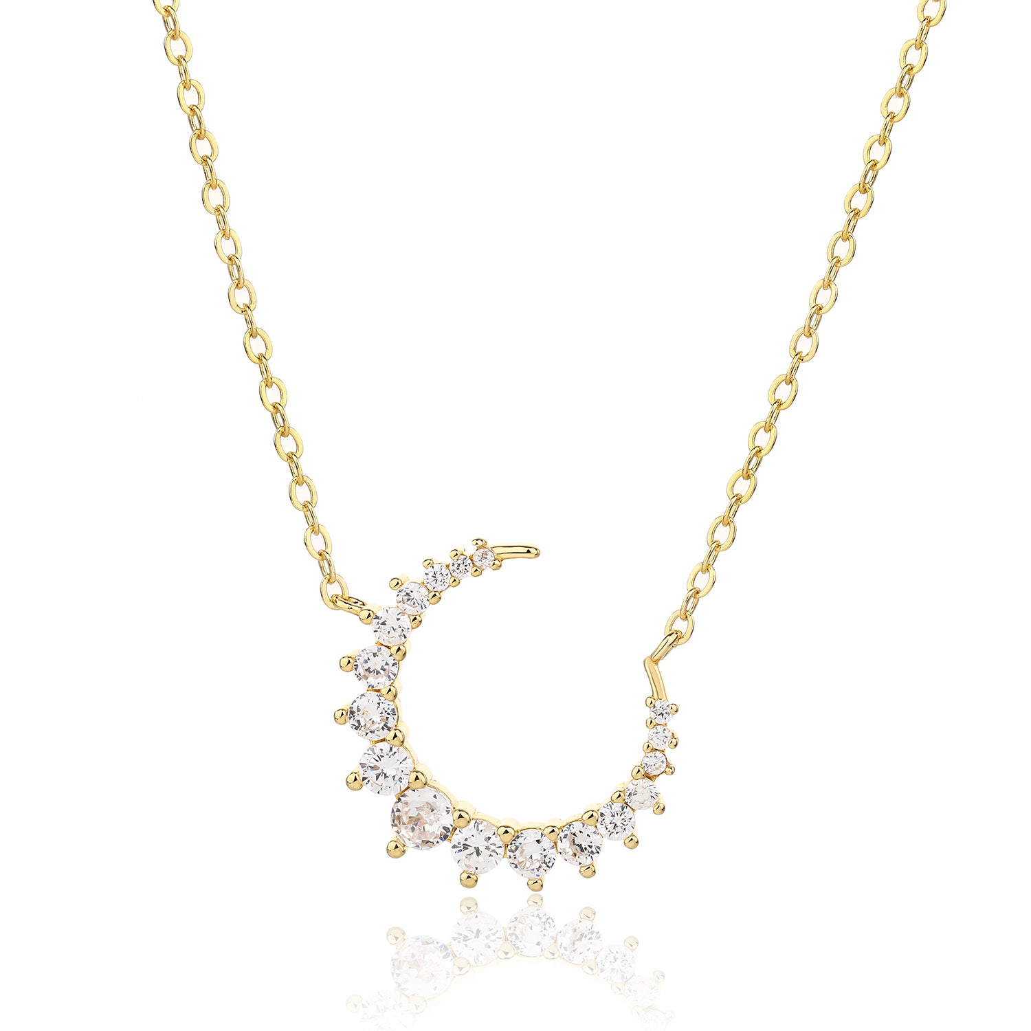 שרשרת עשוייה פליז ובציפוי זהב 14K (2 מיקרון) ומשובצת זרקונים אורך השרשרת: 40+5 ס"מ